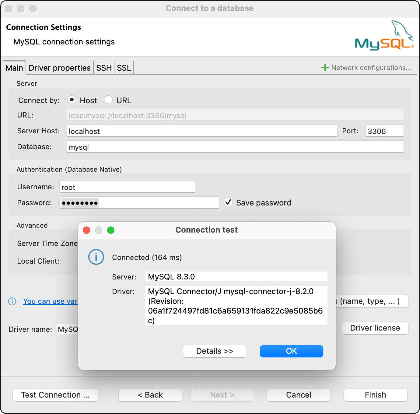 Ehhez a mySql szerverhez már kapcsolódhatunk pl. a DBeaver vagy mySQL Workbench programmal pl. az alábbi ábrán látható beállításokkal: