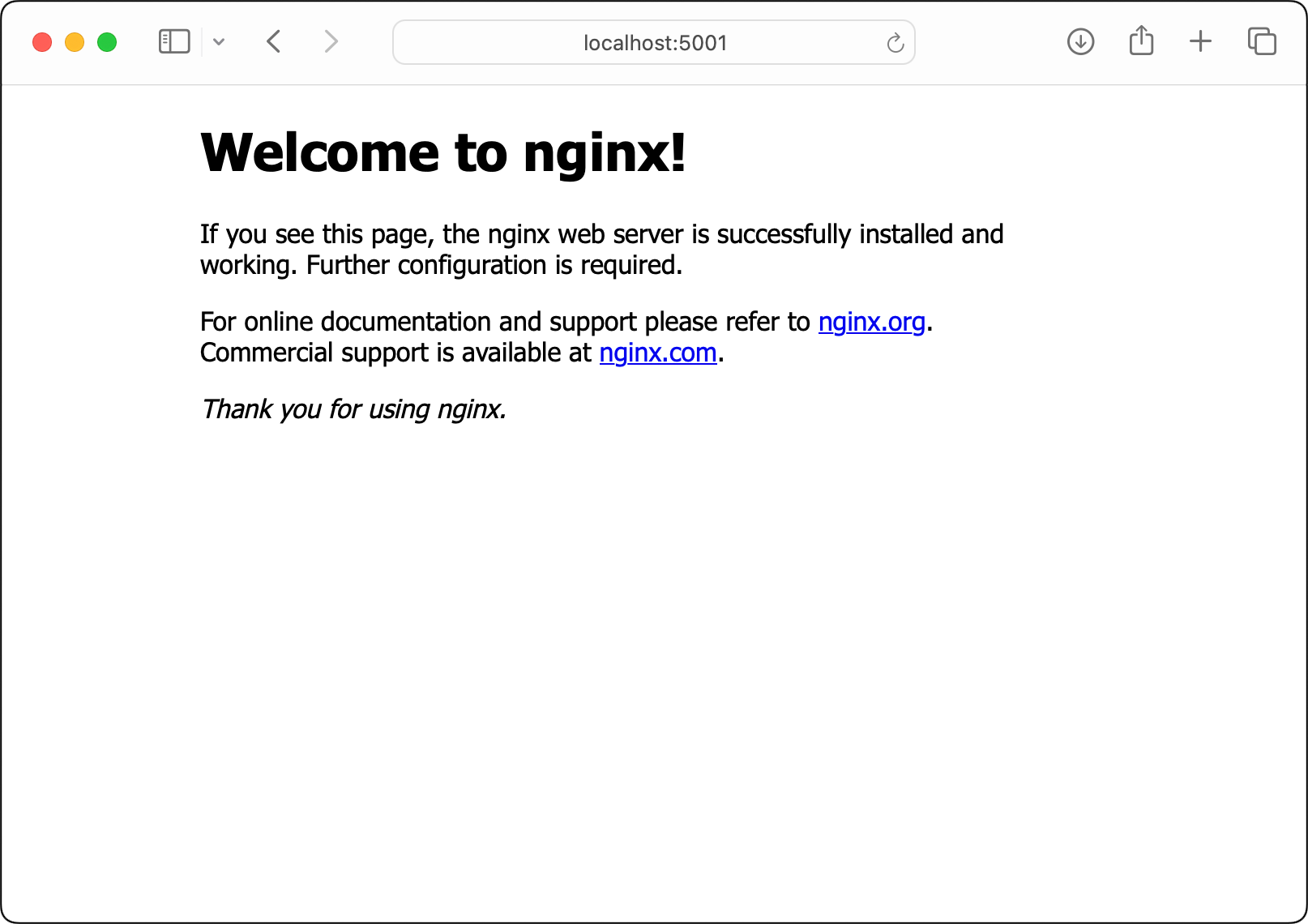 macbook:~$ docker run --name webserver -p 5001:80 nginx